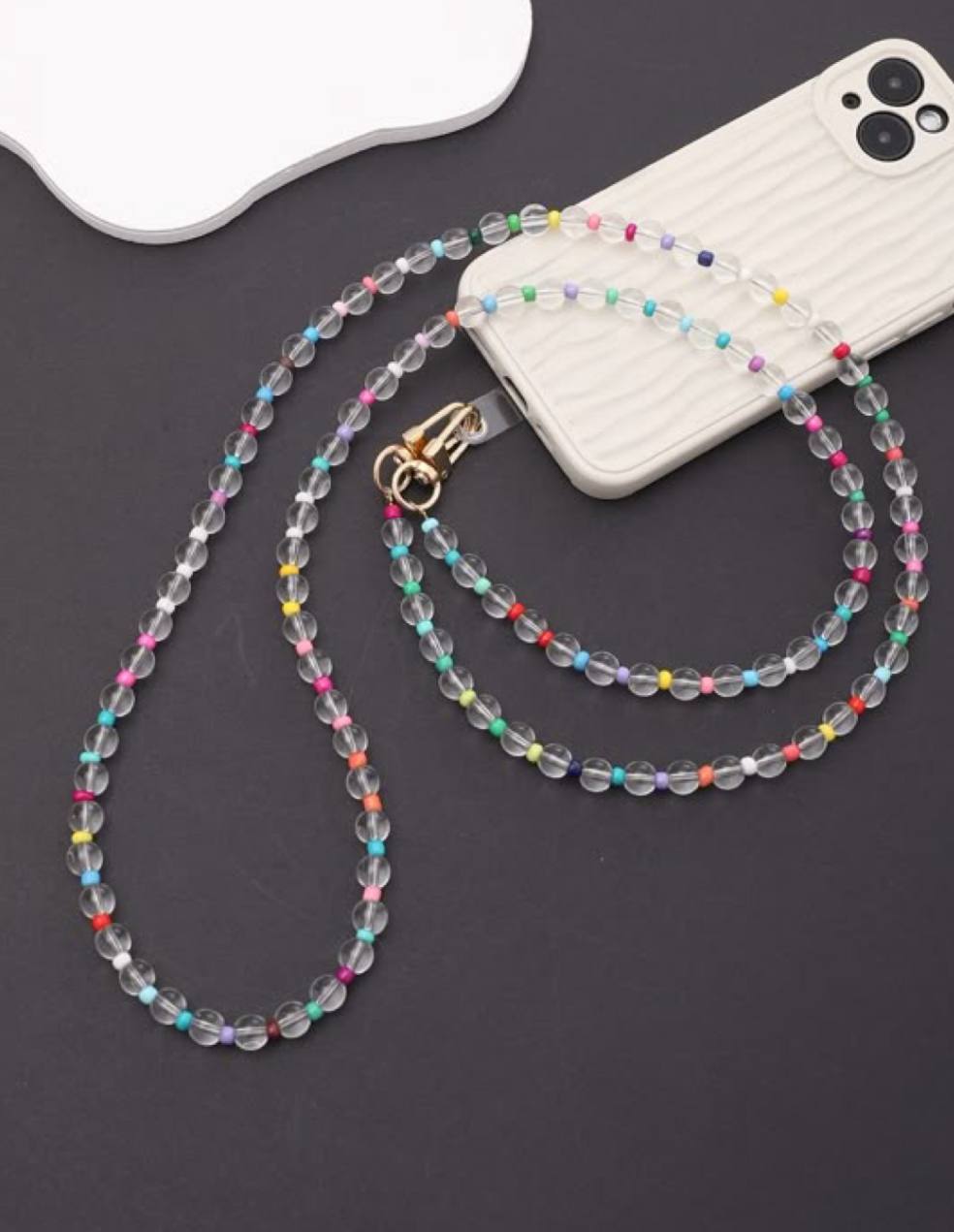 آویز مهره ای موبایل، آویزی زیباست که از مهره های پلاستیکی نشکن در رنگ ها و طرح های مختلف ساخته می شود. برخی از مهره ها شفاف بوده و برخی دیگر مات هستند. اکثرا از رنگ های شاد و مدرن همانند سبز ماچایی، هلویی، مرجانی، صورتی پاستیلی و … برای ساخت این مهره ها استفاده می کنند. مهره ها در طرح های ستاره ای، گرد، طرح ماه، طرح صدف، قلبی، طرح گل و … ساخته می شوند.