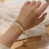 طرح:این دستبند طرح بنگل هست که شامل دوقسمت میباشد که به هم متصل هستندیک قسمت از جنس استیل که طرح موج دارد و دیگری ساده و صدف میباشد که به هم متصل هستند